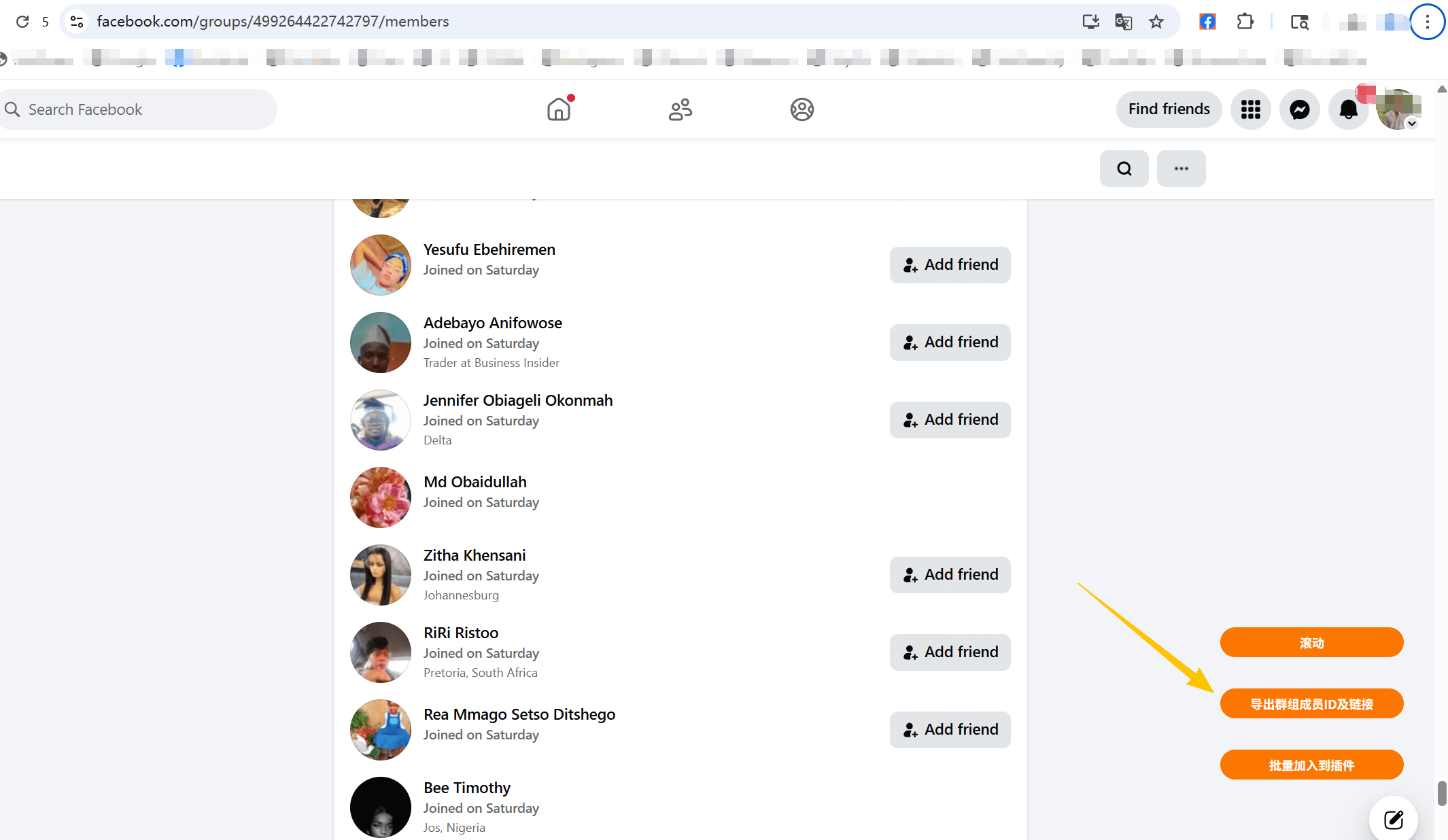 使用场景: 一键导出facebook群组成员fb链接到表格