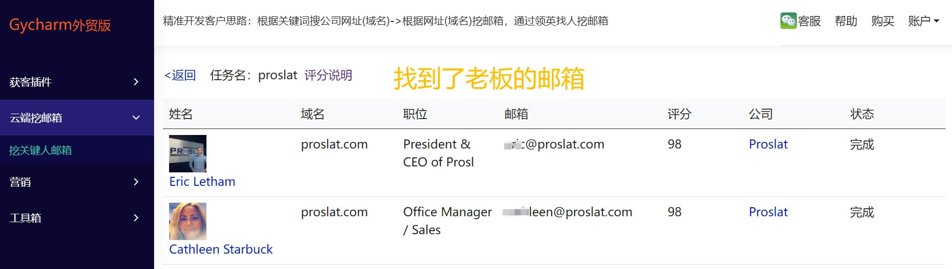 (关键人邮箱挖掘原理:根据姓名+域名到谷歌等网络搜索,如果存在则采集到该邮箱,如果不存在,则根据姓名+域名猜测50多种常见的邮箱,然后通过邮箱清洗验证来识别,验证成功,则采集到该邮箱。该方法和海外一些提供领英关键人邮箱挖掘原理一致!)