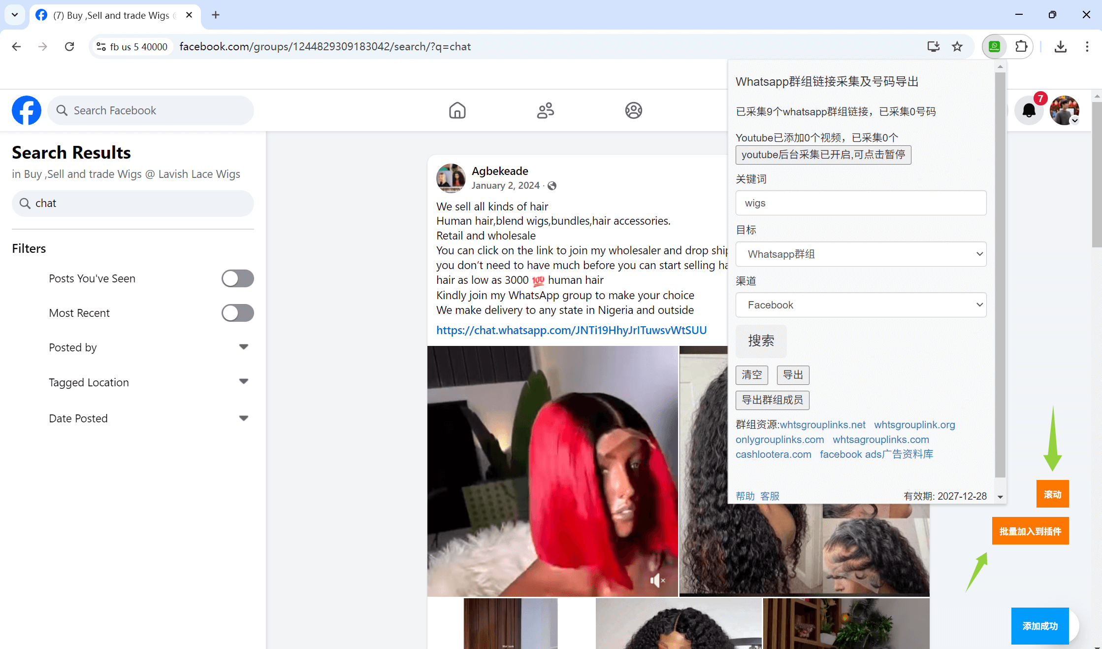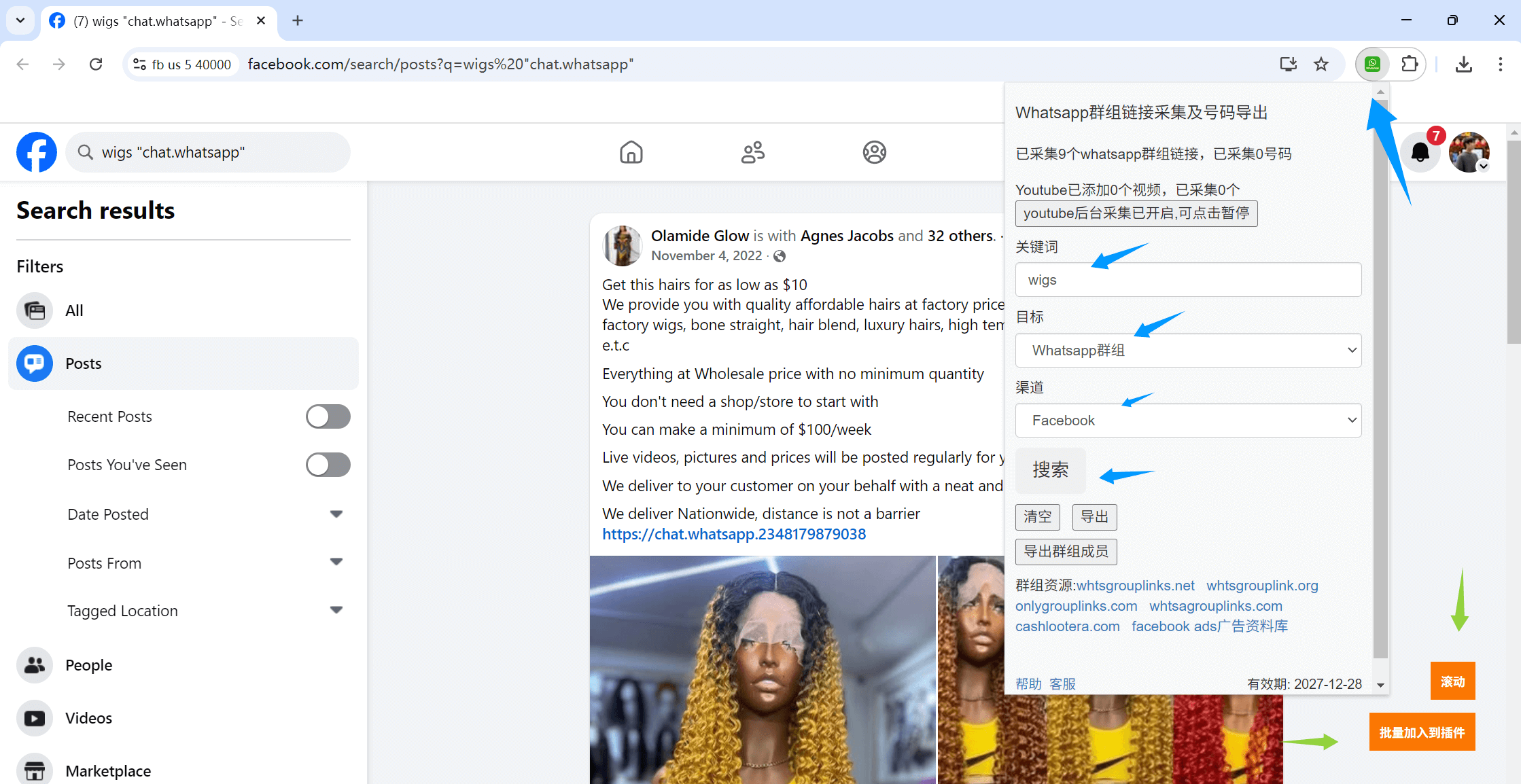 支持从帖子、群组帖子采集whatsapp群组链接及号码