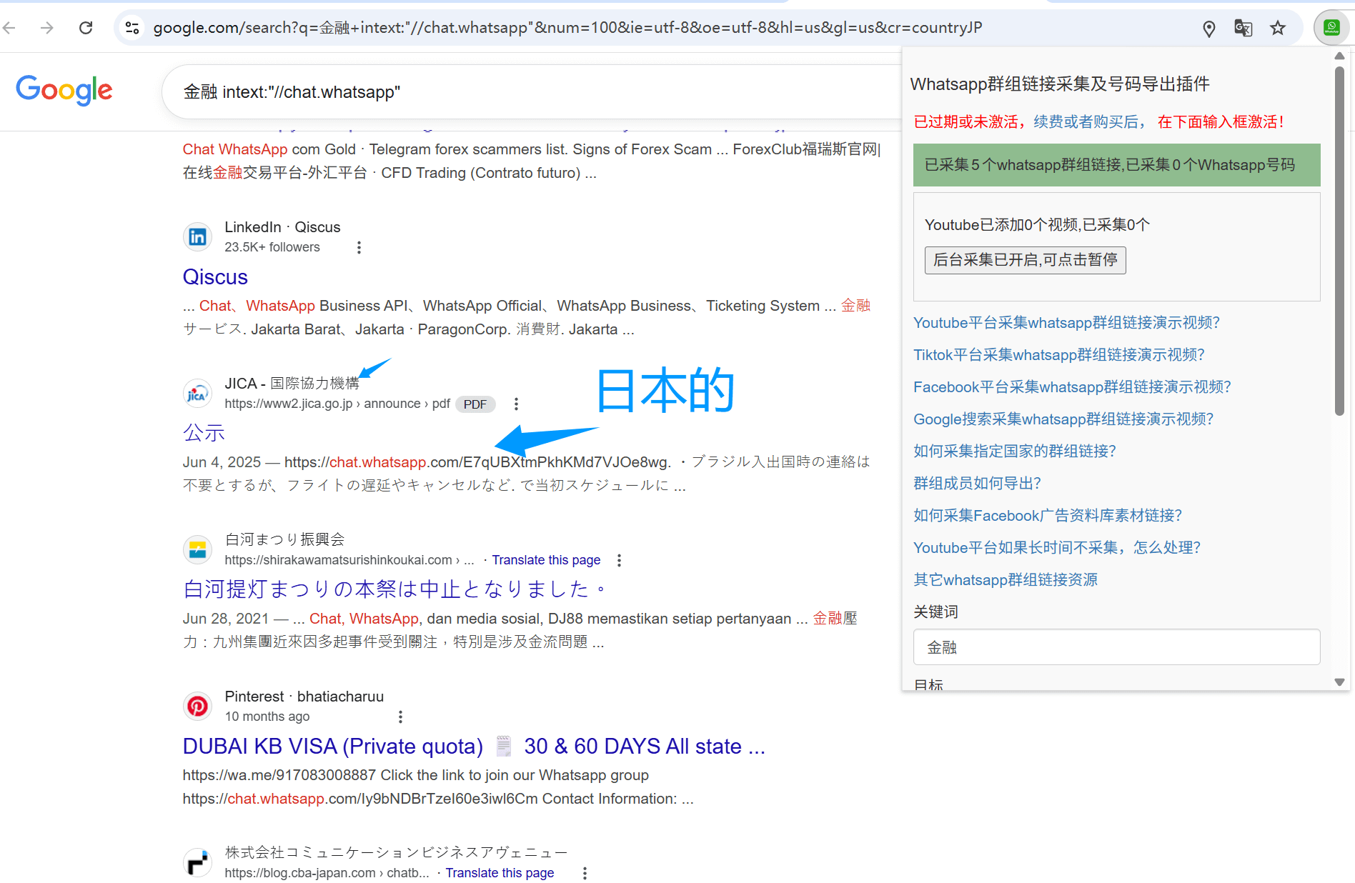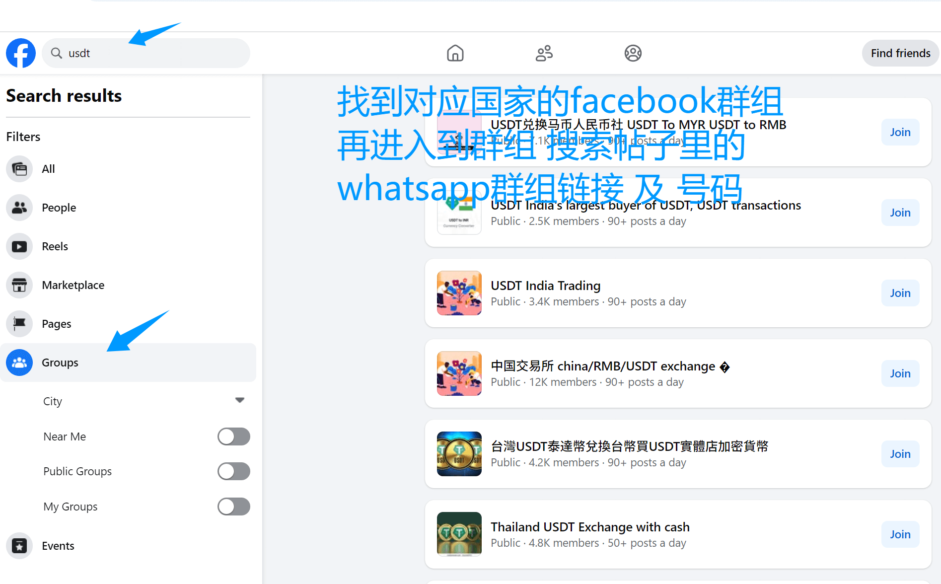 2. 找到facebook不同国家的群组,采集群组内帖子上whatsapp群组链接或者号码