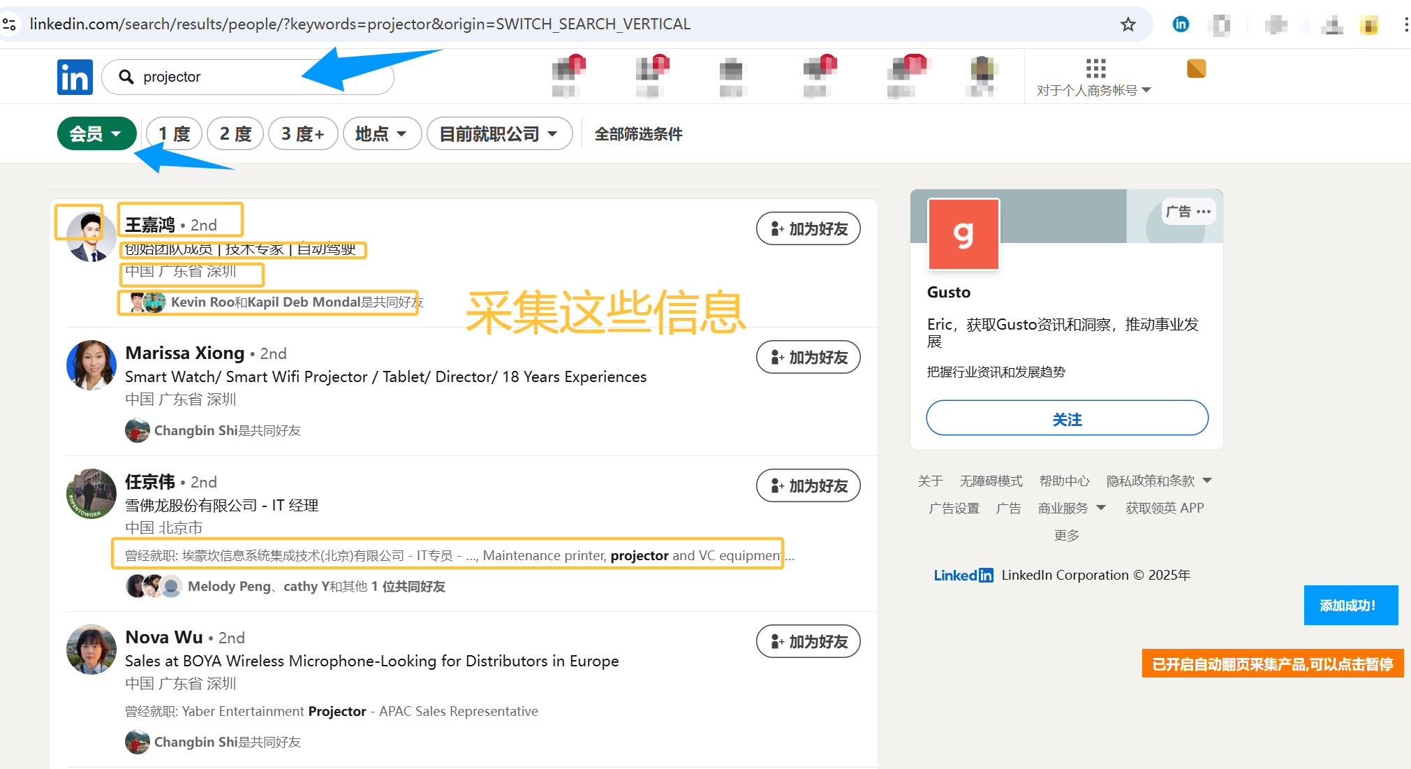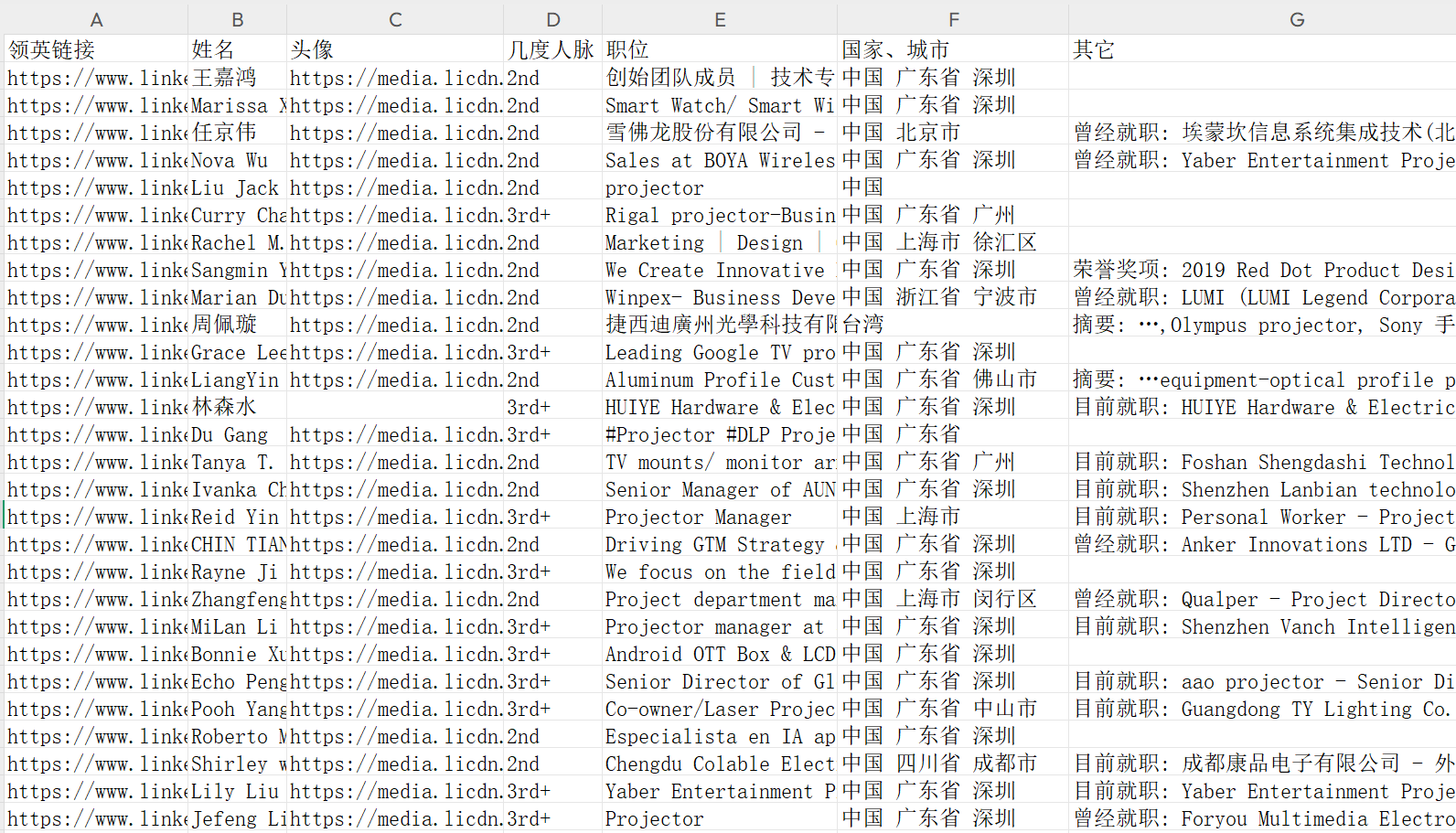 需要采集领英人员信息,采集的样本数据如下