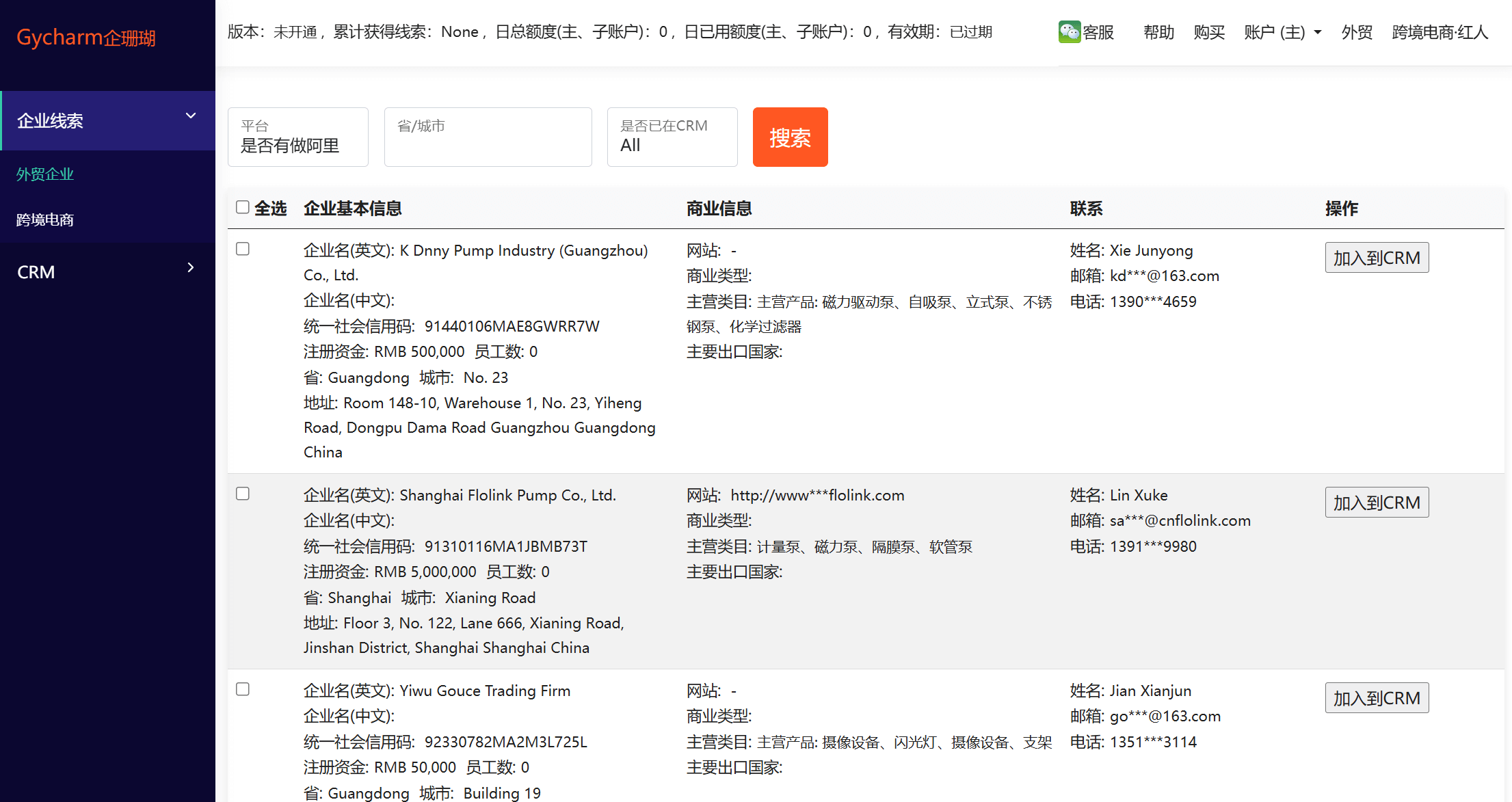 企珊瑚,通过大数据及AI技术,挖掘和分析全网公开的外贸出口、跨境电商、shopify独立站等企业信息,为国际物流企业、货代企业、展会企业、财税、认证、商标产权等外贸、跨境服务商,提供B2B销售线索、商机触达、营销等服务。